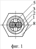 Устройство собирается следующим образом. Берут канаты 2 и их свободные концы пропускают через сквозное отверстие корпуса 1, затем с противоположных сторон в прямоугольный паз 4 устанавливают клинья 5. Затем на свободный конец корпуса 1 со стороны резьбового соединения надевают шайбы 7 и сдвигают к центру до того положения, когда они будут установлены на пазах 6 клиньев 5. В завершение посредством прижимной гайки 8 клинья 5 внутри корпуса 1 сдвигаются. В результате канаты 2 соединены и зафиксированы от смещения относительно друг друга, образуя надежное соединение.