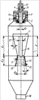 1. Реактор синтеза диоксида кремния, состоящий из горизонтального цилиндрического корпуса, горелочного устройства, узла управления и ввода реагирующих потоков, патрубков вывода смеси абгазов и диоксида кремния, отличающийся тем, что в корпусе реактора установлен стабилизатор пламени, состоящий из двух коаксиально расположенных труб, причем наружная труба, выполненная в форме сопла Лаваля, имеет конфузор и перфорированный диффузор, при этом диаметр (d1) центрального канала горелочного устройства относится к диаметру (d) внутренней трубы стабилизатора пламени как d1:d=1:(1,1÷1,2), причем диаметр (d2) критического сечения сопла Лаваля равен d2=(1,8÷2,2)·d, при этом длина (L) внутренней трубы равна L=(8÷12)·d1, причем длина (L1) конфузора равна L1=(0,9÷0,95)·L, а длина (L2) перфорированного диффузора, снабженного двухсекционной рубашкой, равна L2=(0,25÷0,35)·L, кроме того, углы наклона конических поверхностей конфузора ( ) и диффузора ( ) соответственно равны 15-16° и 20-22°.