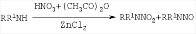 Изобретение относится к способу получения вторичных нитраминов общей формулы RR1NNO2, где R-R1=CH3, С2Н5, С3Н7, n-С4Н9, i-C4H9, O2NOCH2CH2 либо R+R1=CH2CH2OCH2CH2, (CH2)5, CH2CH2N(NO2)CH2CH2, путем нитрования соответствующих вторичных аминов смесью азотной кислоты и уксусного ангидрида в присутствии катализатора – хлорида цинка при температуре 20-40°С, отличающемуся тем, что процесс ведут в среде диоксида углерода при давлении 80-100 атм. Вторичные нитрамины находят применение в качестве гербицидов, эффективных стимуляторов роста растений, антисептиков, присадок к смазочным маслам и топливам, а также в оборонной промышленности. Технический результат – повышение пожаро- и взрывобезопасности процесса, улучшение экологических характеристик процесса, увеличение выходов целевых продуктов, а также подавление побочного процесса образования N,N-диалкилацетамидов. 2 з.п. ф-лы.