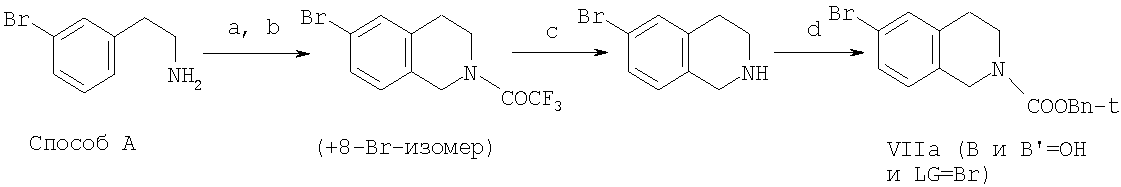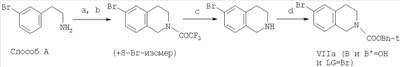 Смесь (0,44 г, 1,4 ммоль) 3:1 6-бром-2-(трифторацетил)-1,2,3,4-тетрагидроизохинолина и 8-бром-2-(трифторацетил)-1,2,3,4-тетрагидроизохинолина (полученного согласно Tetrahedron Lett. 1996, 37(31), 5453-5456) перемешивали при комнатной температуре в этаноле (10 мл), содержащем несколько капель 25%-го гидроксида аммония. Через 2,5 ч раствор концентрировали, растворяли в сухом TFA (1 мл) в атмосфере аргона и охлаждали на бане со льдом. Добавляли DIPEA (0,41 мл, 2,4 ммоль), затем раствор [(4S)-4-метил-2,5-диоксиимидазолидин-4-ил]метансульфонилхлорида (0,27 г, 1,2 ммоль) и сухой тетрагидрофуран (1,0 мл). Смесь перемешивали при комнатной температуре в течение 1 часа и затем концентрировали. Неочищенный продукт переносили в воду и экстрагировали дважды EtOAc. Объединенные органические фазы промывали рассолом, сушили, фильтровали и концентрировали с получением 0,55 г смеси (5S)-5-({[6-бром-3,4-дигидроизохинолин-2(1H)-ил]сульфонил}метил)-5-метилимидазолидин-2,4-диона и (5S)-5-({[8-бром-3,4-дигидроизохинолин-2(1Н)-ил]сульфонил}метил)-5-метилимидазолидин-2,4-диона. Региоизомеры разделяли посредством препаративной ВЭЖХ.