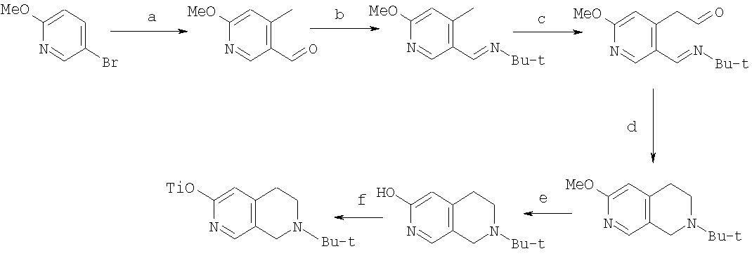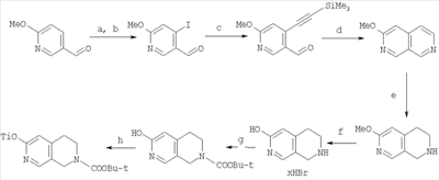 Неочищенный 3-метокси-2,7-нафтиридин (полученный из 4,4 ммоль 6-метокси-4-[(триметилсилил)этинил]никотинальдегида) гидрировали (давление 30 фунт/кв. дюйм (206,85 кПа) при комнатной температуре над PtO2 (приблизительно 0,1 г) в НОАс (25 мл) в течение 2,5 ч. Раствор фильтровали через подушку целит и чистый фильтрат концентрировали при помощи лиофилизации с получением неочищенного 6-метокси-1,2,3,4-тетрагидро-2,7-нафтиридина в виде уксуснокислой соли.