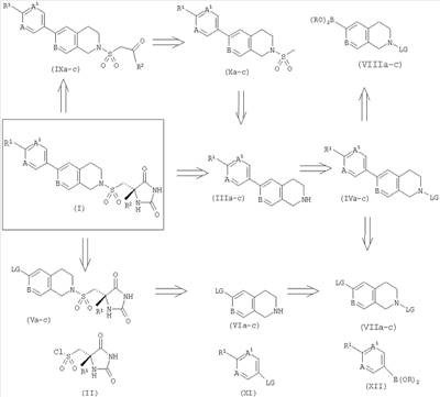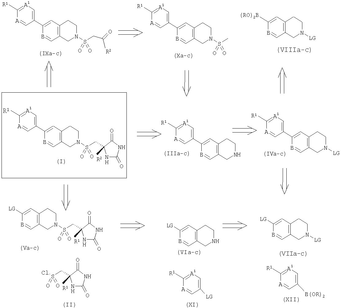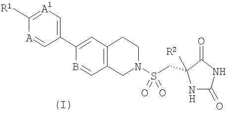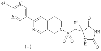 6. Соединение по п.1, выбранное из группы, состоящей из: (5S)-5-метил-5-({[6-[2-(трифторметил)пиримидин-5-ил]-3,4-дигидроизохинолин-2(1Н)-ил]сульфонил}метил)имидазолидин-2,4-диона; (5S)-5-({[6-(4-хлорфенил)-3,4-дигидроизохинолин-2(1Н)-ил]сульфонил}метил)-5-метилимидазолидин-2,4-диона; {4-[2-({[(4S)-4-метил-2,5-диоксоимидазолидин-4-ил]метил}сульфонил)-1,2,3,4-тетрагидроизохинолин-6-ил]фенил}ацетонитрила; (5S)-5-метил-5-{[(6-пиридин-3-ил-3,4-дигидроизохинолин-2(1Н)-ил)сульфонил]метил}имидазолидин-2,4-диона; (5S)-5-({[6-(4-хлорфенил)-3,4-дигидро-2,7-нафтиридин-2(1Н)-ил]сульфонил}метил)-5-метилимидазолидин-2,4-диона; и его фармацевтически приемлемые соли.