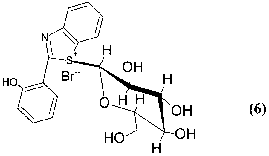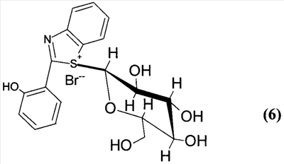 Следует отметить, что реакции гликозилирования по Кенигсу-Кнорру с участием 2-(2′-гидроксифенил)-бензотиазола сопровождются побочной реакцией образования нежелательной примеси, сульфониевой соли из гликозилгалогенида (6), что приводит к снижению выхода требуемого гликозида и значительному усложнению процесса хроматографической очистки продуктов реакции гликозилирования.