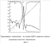 Как видно из данных таблицы 1, полученные композиции при содержании всех видов добавок (неорганических наполнителей) 30-70% имеют наилучшие показатели свойств. Прочность полученных композитов составляет до 21,0 МПа (214 кг/см2), что сравнимо с прототипом. К тому же данные материалы имеют низкие значения водопоглощения до 6,5% (табл.1). А также методом дифференциального термического анализа наблюдают термическую стабильность исходного и полученных материалов (табл.2): образец 3 (фиг.1) термоустойчив до 140°С, а образцы 8, 13 (фиг.2-3 соответственно) – до 210°С, что лучше прототипа. На основании данных показателей полученные композиции могут быть использованы для изготовления композиционных материалов (термостойких, пожаробезопасных покрытий для стеновых панелей, мебели, отделочных декоративных покрытий, электропроводящих потолочных панелей) в деревообрабатывающей и строительной промышленности.