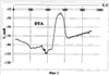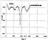 На фиг.1 показана DTA-кривая образца сополимера акриламида с метакрилатом гуанидина 90:10 мол.%.