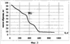 На фиг.3. показана термогравиограмма образца сополимера акриламида с метакрилатом гуанидина 90:10 мол.%.