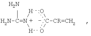 Пример 1. Предварительно приготовленный раствор мономеров и инициатора объемом 25 мл, содержащий 1,0887 г метакрилата гуанидина, 3,0209 г акриламида и 0,0285 г персульфата аммония, переносят в стеклянную ампулу, которую вакуумируют, трижды замораживая и дегазируя, после чего ампулы отпаиваются и помещаются на 4 часа в термостат для проведения сополимеризации при температуре 50°С.