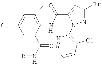 аминоизотриазолы формулы где R означает -CH2O-СН3 или Н и R’ означеат -CF2CF2 CF3; антраниламиды формулы