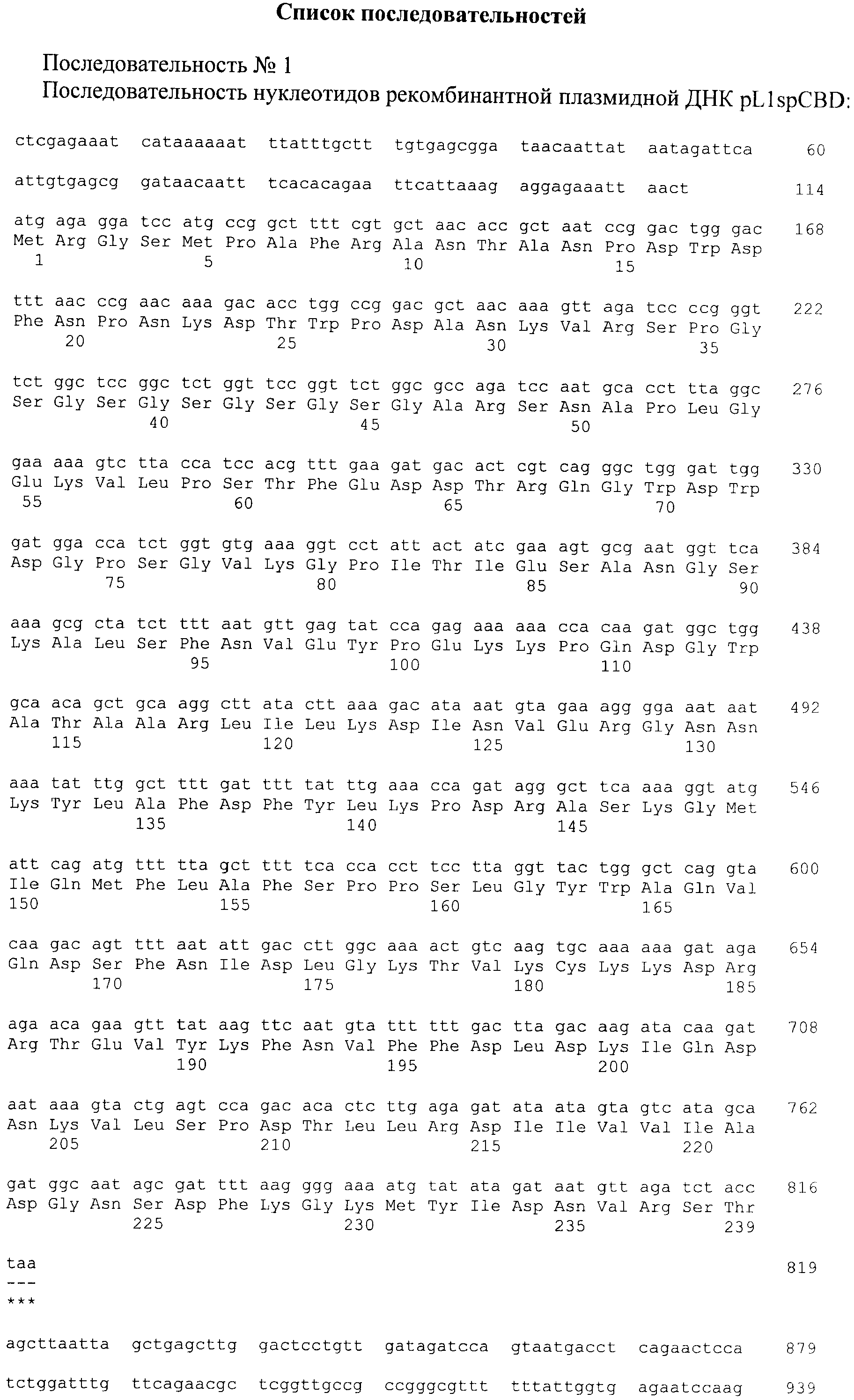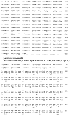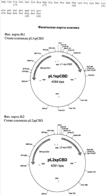 На фиг.1 и 2 приведены схемы плазмид pL1spCBD и pL2spCBD; последовательности плазмид 1 – pL1spCBD, 2 – pL1spCBD.