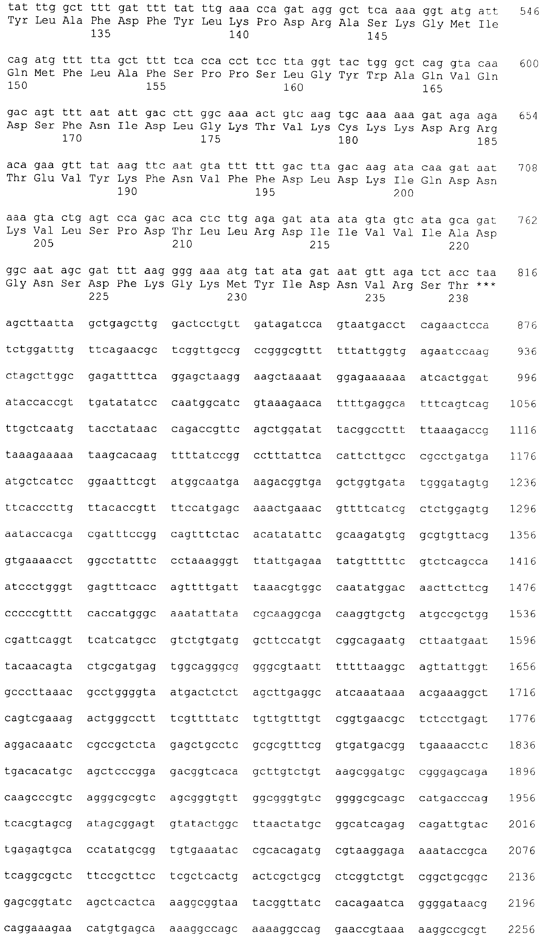 Изобретение проиллюстрированно следующими примерами, приведенными ниже. Все стандартные генно-инженерные и микробиологические манипуляции, а также амплификацию и секвенирование ДНК проводили по известным методикам (Маниатис Т., Фрич Э, Сэмбрук Дж. Молекулярное клонирование, М.: Мир, 1984; Клонирование ДНК. Методы. Под ред. Д.Гловера, Пер. с англ., Москва, Мир, 1988; Saiki R.K., Gelfand D.H., Stoffel S., Sharf S.J., Higuehi R., Horn G.T., Mullis K.B., Eriich H.A. Science, 1988. V.239, 4839, p.487-491; Sanger F., Nicklen S., Coulson A.R. Proc. Nat. Acad. Sci. USA, 1977, V.74, p.5463-5467).