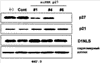 Во-первых, p27 siРНК ко-экспрессировали в кардиомиоцитах, трансфицированных генами D1NLS и CDK4, для оценки влияния экспрессии белка p27Kip1 с помощью вестерн-блота. Точнее, Ad-D1NLS, Ad-CDK4 и Ad-p27 siРНК (moi каждого=100) трансфицировали в кардиомиоциты за 48 часов культивирования для анализа экспрессии белка p27Kip1 вестерн-блоттингом. Способы получения кардиомиоцитов, получения ядерного белка, вестерн-блот и подобные такие же, как способы, описанные выше (Примеры 1 и 3).