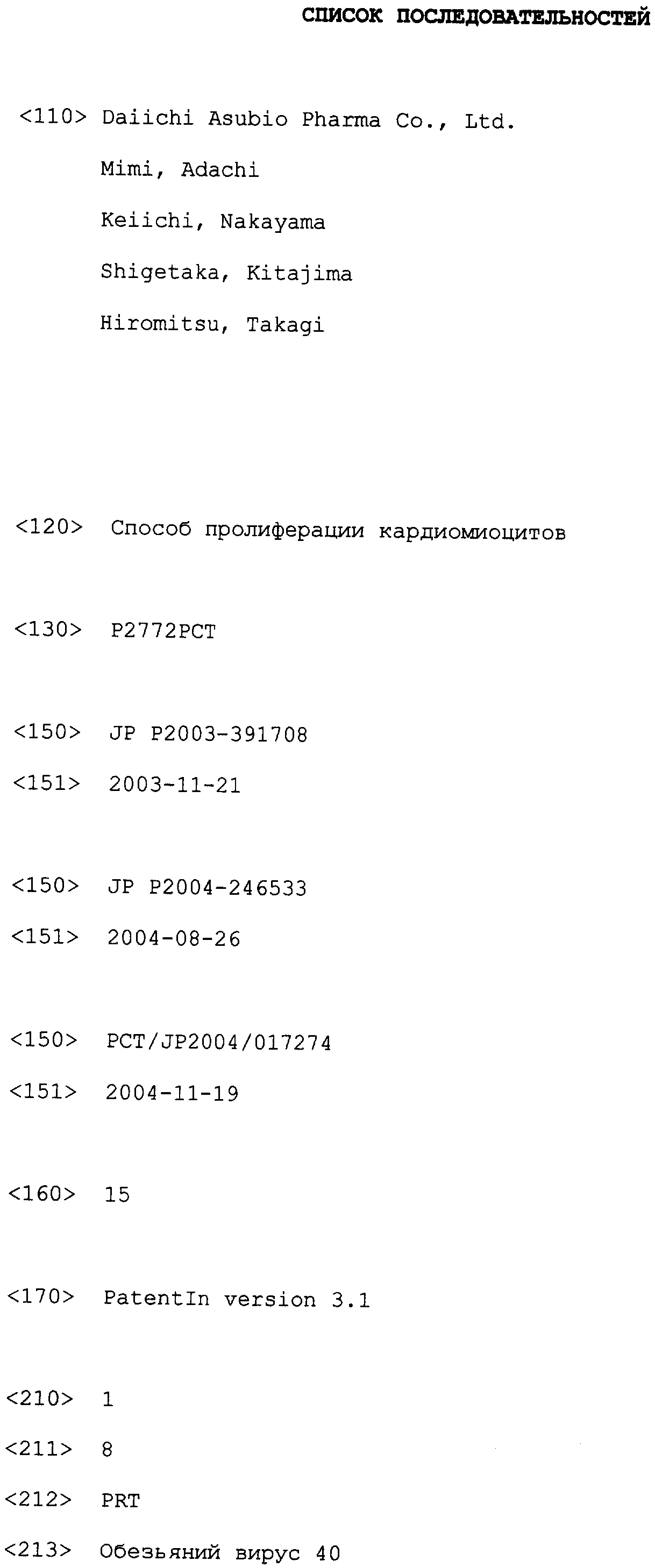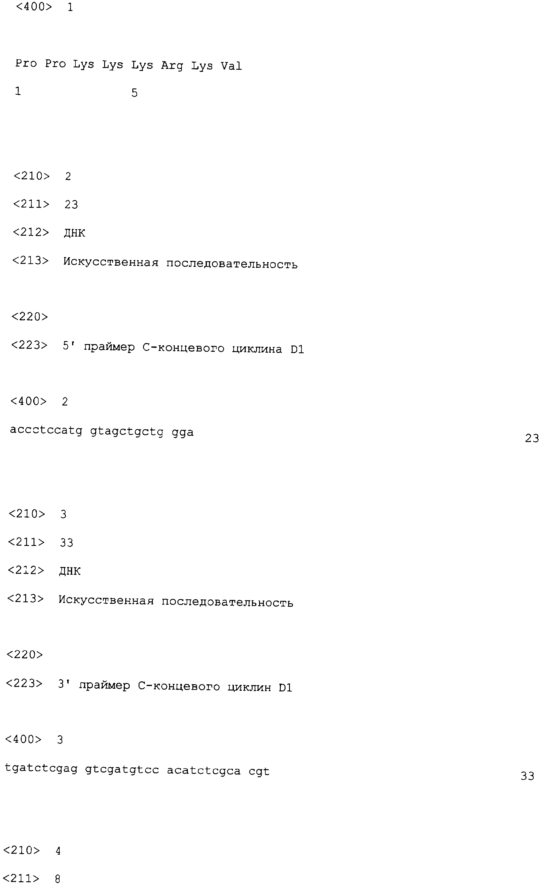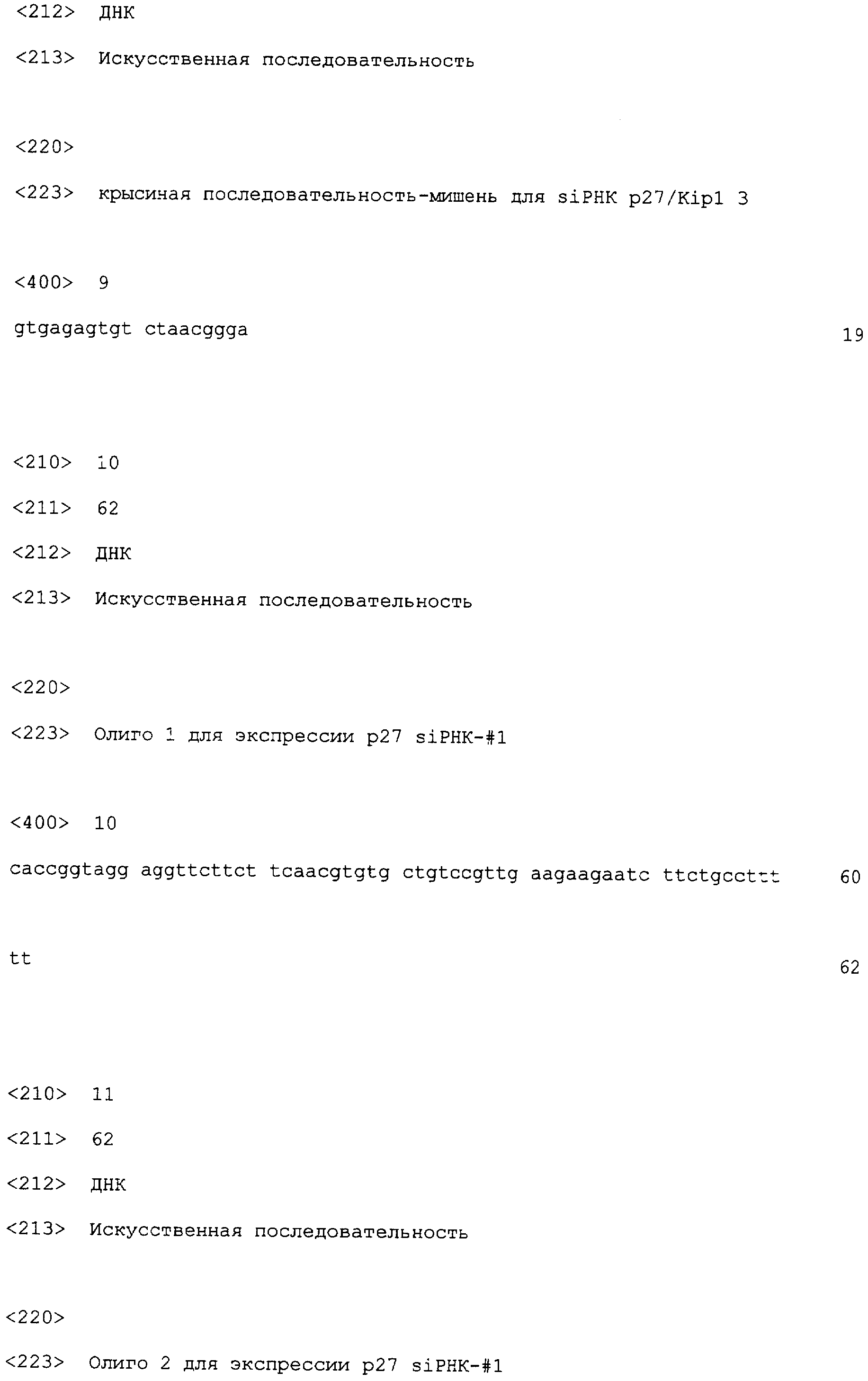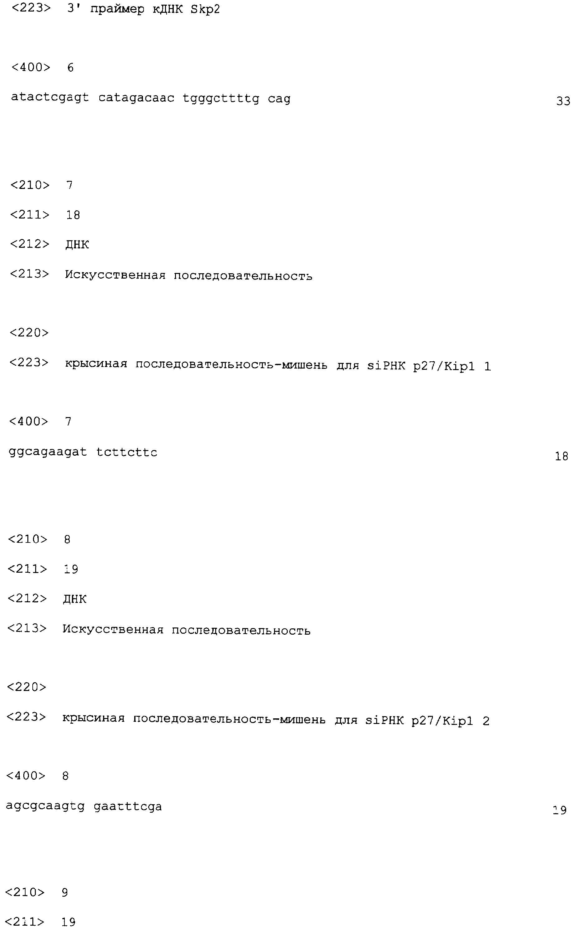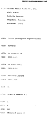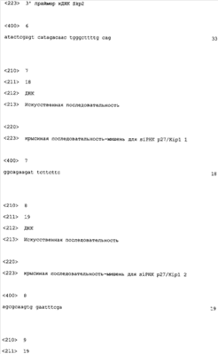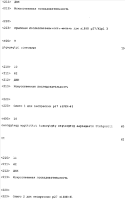 TAMAMORI-ADACHI M. et al. “Critical role of cyclin Dl nuclear import in cardiomyocyte proliferation”, Circ Res., 2003 Jan 10; 92(1):e12-9. POOLMAN RA. et al. “Altered expression of cell cycle proteins and prolonged duration of cardiac myocyte hyperplasia in p27KIPl knockout mice”, Circ Res., 1999 Jul 23; 85(2):117-27. KIM MH. et al. “Successfulinactivation of endogenous Oct-3/4 and c-mos genes in mouse preimplantation embryos and oocytes using short interfering RNAs”, Biochem Biophys Res Commun., 2002 Sep 6; 296(5): 1372-7. TSVETKOV LM. et al. “p27(Kipl) ubiquitination and degradation is regulated by the SCF(Skp2) complex through phosphorylated Thr l87 in p27”, Curr Biol., 1999 Jun17; 9(12):661-4. TOYOSHIMA H. et al. “p27, a novel inhibitor of Gl cyclin-Cdk protein kinase activity, is related to p21”, Cell, 1994 Jul 15; 78(1):67-74. RU 2162342 C2, 27.01.2001. RU 2197992 C2, 10.02.2003.
