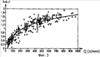 К=A lg(Qгаз)+В, где Qгаз обозначает количество вводимого в сталь газа. Сказанное четко иллюстрируется графиком на фиг.4. Расход Q потока газа отложен как абсцисса на логарифмической шкале, а К приводится как ордината для двух приведенных один рядом с другим примеров.