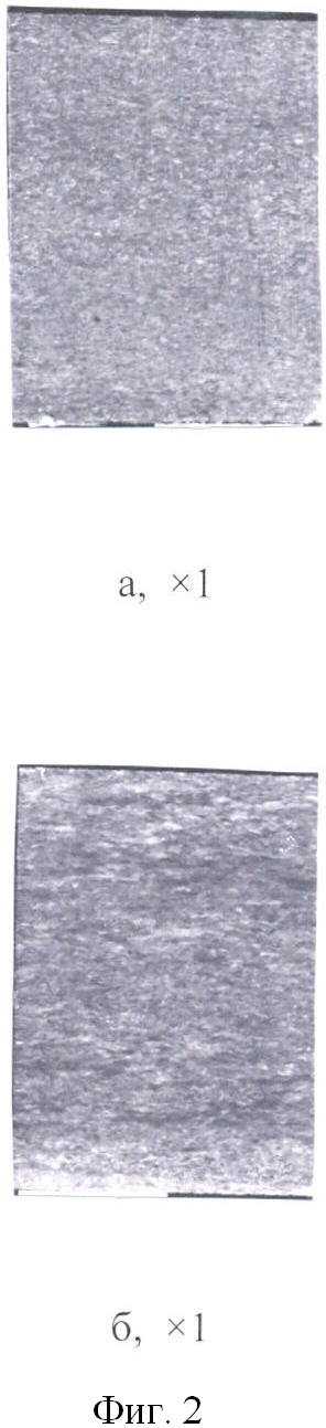 Макроструктура плит в направлении поперек прокатки приведена на фиг.2, где: