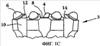 Как наиболее ясно видно на фиг.1А и 2А, буровое долото 1 на своей наружной стороне снабжено рядом по существу прямых, передних 10 и задних 11 канавок для обломков выбуренной породы, проходящих в осевом направлении бурового долота 1. Каждая передняя канавка 10 соединена с соответствующей задней канавкой 11 для образования канавки для обломков выбуренной породы, которая проходит по всей длине бурового долота 1. Каждая передняя канавка 10 для обломков выбуренной породы расположена симметрично относительно линии, параллельной центральной оси CL. Передние канавки 10 выполнены между каждыми двумя периферийными зубьями 6 в корпусе долота. В буровой головке 3 установлено восемь периферийных вставных зубьев 6, хотя, с другой стороны, в другом долоте согласно настоящему изобретению могло быть расположено любое число вставных зубьев из 5-10 вставных зубьев. Каждый периферийный зуб 6 наклонен наружу относительно центральной оси CL, определяя максимальный диаметр бурового долота. Диаметр периферийного зуба 6 предпочтительно больше, чем диаметр переднего зуба 4. Каждый периферийный зуб 6 расположен в стальном элементе или приподнятой части 12, по меньшей мере, частично выступающей относительно плоскости Р в осевом направлении бурового долота. Каждая приподнятая часть 12 выполнена за одно целое с корпусом 2 и, в общем, направлена вперед, т.е. в направлении подачи бурового долота во время его работы. В приподнятой части образовано отверстие (не показано) для размещения одного периферийного зуба 6. С другой стороны, в каждой приподнятой части могут быть расположены два периферийных зуба. Каждая приподнятая часть 12 у верхней или наружной части периферийных вставных зубьев отделена от другой соседней приподнятой части 12 передней поверхностью 8 для дробления породы или дополнительной передней канавкой 13 (изображена пунктирной линией на фиг.1D). Наружная часть содержит ряд распределенных по окружности, приподнятых частей 12, количество которых равно количеству периферийных вставных зубьев 6, т.е. каждая приподнятая часть 12 несет один периферийный зуб 6. Каждый периферийный зуб 6 выступает вперед по направлению оси за все передние зубья 4. Общая плоскость, в которой расположены самые передние по направлению оси части передних зубьев 4, находится позади относительно общей плоскости, в которой расположены самые передние по направлению оси части окружающих периферийных зубьев 6. Таким образом, достигается больший направляющий момент благодаря поднятию кольцевого ряда периферийных зубьев 6 над передней поверхностью 8 и передними зубьями 4. Приподнятые части 12 отделены друг от друга радиальным проходом или частью 14 передней поверхности 8 для обеспечения беспрепятственного течения промывочной среды между ними.