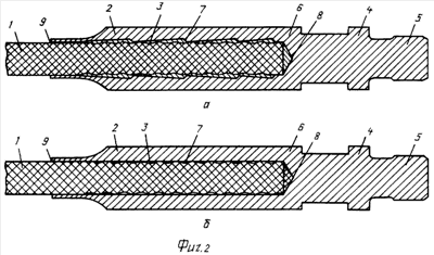 Кроме того, для такого соединения характерны более низкие требования к состоянию соединяемых поверхностей, а также исключается их дополнительная подготовка, характерная для клеевых соединений. Это не только исключает влияние клеевого соединения на прочность и надежность штанги в целом при ее эксплуатации, но и позволяет существенно упростить операцию крепления стержня и ниппеля.
