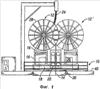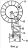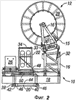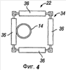 Сверху или выше от держателя 22 инжектора установлена система 34 преобразователя, которая определяет ориентацию бухтованной трубы относительно держателя 22 инжектора или совмещение трубы с ним. Как это показано на фиг.4, система 34 преобразователя, которая подходит для использования в соответствии с настоящим изобретением, содержит четыре валика 36, эффективно охватывающие трубу 14. Система 34 преобразователя дополнительно содержит электронные, электрические или гидравлические датчики, которые обнаруживают, когда бухтованная труба 14 находится в контакте с одним или несколькими валиками 36. Когда труба 14 входит в контакт с валиком или валиками 36, система 34 преобразователя посылает сигнал на соответствующий контроллер (например, оператору, на программируемый логический контроллер (ПЛК) или на другое логическое устройство), при этом поступает питание на соответствующий гидравлический цилиндр или цилиндры 30 или 32, чтобы перемещать узел 12 барабана и, следовательно, трубу 14 назад в зацентрированное совмещение с держателем 22 инжектора. Следует иметь в виду, что диапазоном перемещения трубы 14 относительно трубного инжектора 22 управляют за счет размещения валиков 36 и изменения чувствительности системы 34 преобразователя, которая может быть оптимизирована для конкретной используемой трубы 14. В соответствии с предпочтительным вариантом, когда используют трубу с внешним диаметром 31/4 дюйма, система 34 преобразователя позволяет трубе отклоняться в любом направлении не более чем ориентировочно на 1/2 дюйма от осевой линии скважины, ранее возникновения корректирующего или восстанавливающего действия.