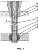 При проведении «щадящей» перфорации за счет использования мощных кумулятивных перфораторов с низкой фугасностью, например ПРК-42С, ПМИ-48, образовываются длинные каналы 16, глубоко проникающие в горную породу и преодолевающие закольматированную зону 15.