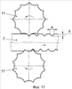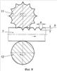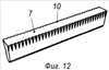 Профиль насечек 10 может быть любым, например прямоугольным (фиг.13), треугольным (фиг.14) или полукруглым (фиг.15).