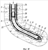 Скважинные фильтры могут быть установлены в составе обсадной колонны (фиг.1 7) или в составе хвостовика (фиг.9 14), при этом хвостовик может быть зацементирован или установлен без цементации. Обсадная колонна устанавливается после бурения скважины «А» (фиг.1). Наиболее часто применяется турбинное бурение наклонно-направленных и горизонтальных скважин в породе 1 при помощи установленного на буровой колонне 2 долота 3. Бурение осуществляется до выхода в продуктивный пласт 4. Возможно расположение нескольких продуктивных пластов 4 друг над другом, в этом случае бурение выполняют до нижнего продуктивного пласта 4. Компоновка буровой колонны включает (фиг.2 7) обсадные трубы 5, в нижней части обсадной колоны установлен, при помощи муфт 6, по меньшей мере один скважинный фильтр 7. Ниже скважинных фильтров 7 установлены башмак 8 и обратный клапан 9. На каждом скважинном фильтре 7 на свободной от фильтрующего элемента его трубе необходимо установить и закрепить центратор 10, чтобы его сцентрировать в скважине «А». скважинные фильтры 7 (фиг.3) выполнены в виде перфорированного корпуса 11 с отверстиями «Б», в которых установлены пробки 12. Также скважинные фильтры 7 имеют фильтрующий элемент (на фиг.1 7 не показано). Выше скважинных фильтров 7 установлены пакеры 13, число которых соответствует числу продуктивных пластов 4. В дальнейшем показан для примера один пакер 13. Пакер 13 может быть любой конструкции, для примера приведен пакер 13 с упругой манжетой 14. После спуска обсадной колонны промывают скважину. Потом поочередно сверху вниз активируют пакеры, для этого закрывают центральные отверстия в седлах пакеров. Чтобы перекрыть пакер 13 на его седло сбрасывают сбросовый элемент, например шар 15 (фиг.4).