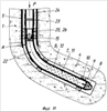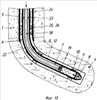 Возможна установка скважинных фильтров 7 в состав хвостовика 22 при помощи разъединяющего устройства 23 и транспортной колонны 24 (фиг.9 14). В состав хвостовика 22 входят разъединяющее устройство 23, пакер 25 с упругой манжетой 26, несколько скважинных фильтров 7, башмак 8 и обратный клапан 9, установленные ниже скважинного фильтра 7, и несколько центраторов 10, закрепленных на скважинных фильтрах 7.