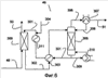 Насыщенный абсорбент в линии 302 нагревается в теплообменнике 303 от регенерированного (обедненного) абсорбента, и потом насыщенный абсорбент входит в десорбер 305 вблизи его верха. Температура в десорбере является более высокой, а давление – более низким, чем в абсорбере 300, в результате чего CO2 выделяется из абсорбента. Выделившийся из абсорбента СО2 удаляют из десорбера по линии 306 CO2. CO2 в линии 306 охлаждается в парциальном конденсаторе 307 горячего орошения, из потока с высоким содержанием СО2, выходящего из устройства захвата СО2, удаляется влага по линии 51. Влага, сконденсировавшаяся в парциальном конденсаторе 307 горячего орошения, возвращается в десорбер по линии 308 горячего орошения.