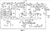 Выходящий из устройства 49 захвата СО2 поток с высоким содержанием СО2 по линии 50 поступает в увлажнитель, где газ нагревают и насыщают водой, который потом идет по линии 57 в теплообменник 44, где газ с низким содержанием СО2 нагревается от горячего газа в линии 43. Предпочтительно воздух или другой соответствующий газ вводят в линию 57 (или 50) по линии 73 воздуха, чтобы компенсировать массу СО2, которая была удалена из газообразных продуктов сгорания, и поэтому теплоемкость потока с низким содержанием СО2 приблизительно та же, что и теплоемкость газообразных продуктов сгорания в линии 43. Воздух впускается в систему через воздухозаборник 70 и сжимается компрессором 71, работающим от электродвигателя 72. Как вариант, некоторое количество воздуха из компрессора 78 можно пустить в обход камеры 25 сгорания и последующего оборудования и ввести в линию 50 или линию 57 (на Фиг.1 это не показано).