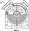 Ступица диска 10 прижата в осевом направлении к внутренней распорной втулке 80 посредством гайки 82 с резьбой. Правая торцевая поверхность внутренней распорной втулки 80 упирается в буртик 84 вала 8. Ступица диска 10 имеет правую торцевую поверхность 86, которая находится в скользящем контакте с первым элементом 44 статора, и имеет левую вторую торцевую поверхность 88, которая находится в скользящем контакте со вторым элементом 46 статора. Эти скользящие контакты обеспечивают определенный уплотняющий эффект. Полное уплотнение обеспечивается посредством уплотнительных колец 90 с кромками, расположенных между неподвижной наружной распорной втулкой 58 и вращающейся внутренней распорной втулкой 80. Как вариант, могут быть использованы скользящие кольцевые уплотнения.