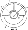 Левая фронтальная поверхность 60 первого элемента 44 статора и правая фронтальная поверхность 62 второго элемента 46 статора примыкают друг к другу. Имеется фактическая верхняя первая зона 64 примыкания с протяженностью, соответствующей приблизительно 40°, и фактическая нижняя вторая зона 66 примыкания с протяженностью, соответствующей приблизительно 200°. Имеется впускное отверстие 68 статора 42 между первой зоной 64 примыкания и второй зоной 66 примыкания и выпускное отверстие 70 статора 42 между второй зоной 66 примыкания и первой зоной 64 примыкания. Впускное и выпускное отверстия 68, 70 являются круглыми на радиальном виде, и их диаметр и положение соответствуют отверстиям 40 в теле 22 корпуса 20. Тем не менее, впускное и выпускное отверстия 68, 70 могут иметь размер, который меньше или больше размера отверстий 40.
