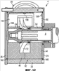 Направляющая 92 имеет в основном такую же конфигурацию, как в варианте осуществления согласно фиг.4. Как показано на фиг.12, две фронтальные краевые поверхности являются плоскими и просто примыкают к соответствующим торцевым крышкам 24 и 26. Радиально наружная краевая поверхность направляющей 92 является выпуклой и просто примыкает к внутренней периферии корпуса 20. Однако следует подчеркнуть, что один образующий единое целое уплотнительный элемент или три уплотнительных элемента могут быть предусмотрены для обеспечения более полного уплотнения в данных трех зонах контакта.