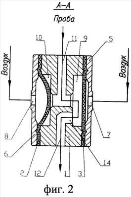 корпус выполнен с двумя расположенными по торцам полостями 9 и 10, закрытыми эластичными мембранами 2 и 3,