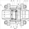 Поставленная задача решается тем, что в корпусе герметично закреплена с кольцевым ребром обечайка, в ее внутренней полости установлено седло, по наружной поверхности которого выполнена кольцевая канавка, а от нее в осевой плоскости в сторону выходного фланца – паз, в последних помещена проушина для крепления тарелки, причем торцы корпуса, взаимодействующие с фланцами, выполнены с профилем овальной прокладки, а крепление седла производится посредством болтов, пропущенных через отверстие в кольцевом ребре обечайки.