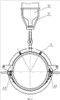 1. Муфта дюкерная, состоящая из двух полумуфт и патрубков для подачи композитного состава, отличающаяся тем, что верхняя полумуфта снабжена индикаторными патрубками, крепежными кронштейнами, механизмом регулирования вертикального положения емкости, включающим в себя корзину для установки емкости с композитным составом, ствол, кольцо, гайку шарнирную, опору, стопорную втулку, шаровой кран, муфту короткую, контргайку, крышку муфты, иглу, нижнюю полумуфту, включающую следующие конструктивные элементы: установочные штифты, соединяющие верхнюю и нижнюю полумуфты, откидные болты, установочные болты, крепежную цепь, хомуты, резиновые уплотнения.