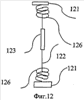 Фиг.8 показывает характер изгиба упругого стержня на резонансной частоте, превосходящей основную резонансную частоту.