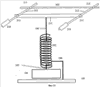 Фиг.10 показывает схему колебательной системы на основе упругой спиральной пружины с прикрепленным к ней штоком.
