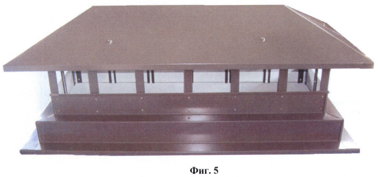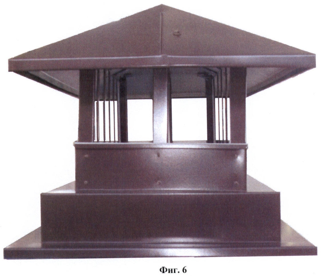 Надежность конструкции позволяет выдержать давление сверху до 10 кДж. Устройство «Декоративного защитного колпака на печную трубу» и способ предотвращения обледенения и образования сосулек в зимнее время, обгорания и растрескивания лицевого покрытия в значительной степени позволяет защитить от осадков, посредством изготовления из листовой стали с нанесением на нее защитного слоя (полиэстер). Простота изготовления устройства методом ручной сборки из металлического листа с использованием необходимого для того оборудования и способа его осуществления значительно снижает эксплуатационные расходы.