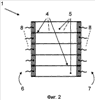 Смежные открытые концы каналов 5 объединены при помощи коллекторов 6 и 7, которые выполнены электрическими (фиг.2). Нагрев жидкого агента в каналах 5 обеспечивается при помощи указанных коллекторов, выполненных в виде множества электрических контактов 8, расположенных по концам каналов 5. При этом данные контакты одновременно могут выполнять функцию заглушек этих каналов. Каналы 5 заполняются любой электропроводной жидкостью (например, подсоленной водой), а контакты 8 каждого коллектора могут быть соединены параллельно или последовательно; возможны также комбинации этих двух типов электрических соединений.