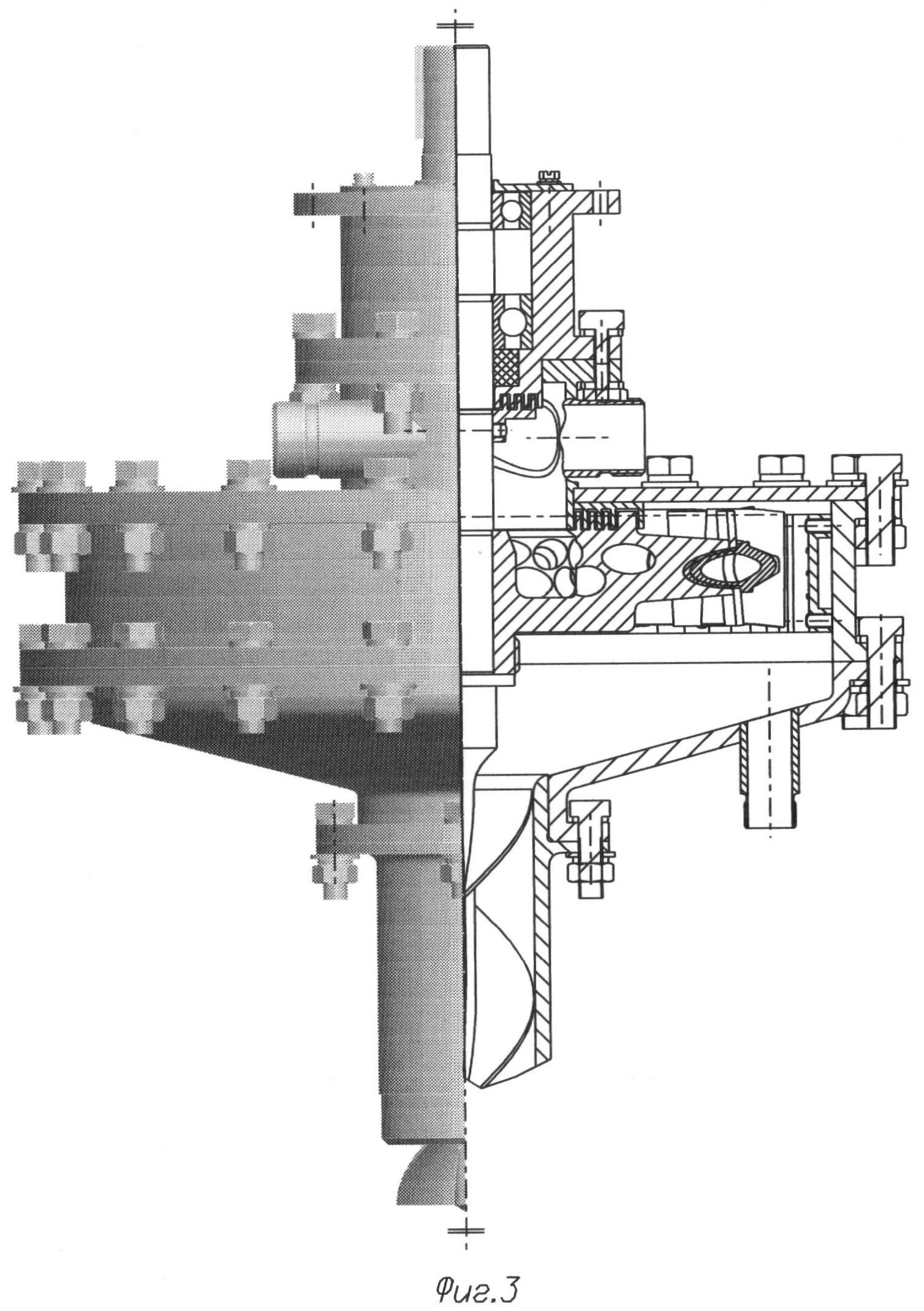 Такая компоновка улучшает гидродинамику поступления жидкости в каналы колеса центробежного, разгружает подшипники от радиальных нагрузок, заменяя осевой, и т.д., но самое главное, и это крайне принципиально, именно такая компоновка элементов энергоустановки позволяет реализовать концепцию «сухое колесо в активной рабочей зоне» в полной мере. Конструктивно такая компоновка элементов проще, надежнее и дает ряд существенных преимуществ при изготовлении, сборке, эксплуатации и ремонте энергоустановки.