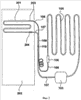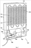 Конденсатор 105 содержит изогнутую трубку 111, прикрепленную к панели в форме жалюзи 112, которая способствует переносу тепла от трубки 111 к окружающему воздуху в процессе работы.