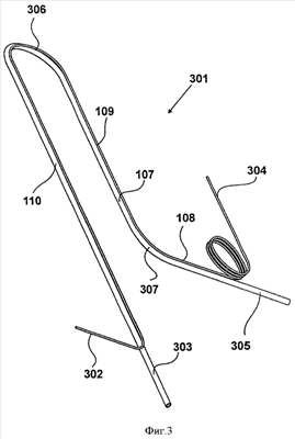 На фиг.3 изображен теплообменник 301, содержащий всасывающую трубку 107 и капиллярную трубку 108, до момента его установки в холодильный агрегат 101. Теплообменник 301 выполнен в виде отдельной детали до начала сборки холодильного агрегата 101.