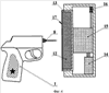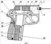 Рукоятка 5 (см. фиг.7) макета пистолета 1 с передней стороны содержит подпружиненную планку 25, взаимодействующую с датчиком 4 усилия сжатия рукоятки 5. Экран 11 индикатора 10 размещен на тыльной стороне стволовой части макета пистолета 1.