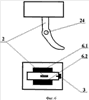 После этого стрелок 19, плавно нажимая на спусковой крючок 2, производит выстрел. При этом спусковой крючок 2, соприкасаясь датчиком 3 нажатия спускового крючка 2, замыкает электрическую цепь, и электрический сигнал от датчика 3 нажатия спускового крючка 2 поступает на электрический привод 15 мишени 12, после чего мишень 12 перемещается в направлении, перпендикулярном плоскости мишени 12, навстречу игле 8 макета пистолета 1 до их контакта. После контакта с макетом пистолета 1 мишень 12 возвращается в исходное положение.