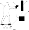 Стрелковый тренажер содержит платформу 18 для размещения на ней стрелка 19. Платформа 18 выполнена в виде двух независимых опор 20.1 и 20.2 с датчиками давления 21.1 и 21.2 и индикатором 22 платформы 18.