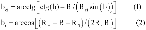 hi=arcsin[sin(di)sin(F)+cos(di)cos(F)cos(L-ai)], где i=1, 2 [2].