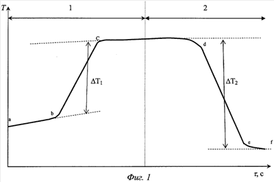 На фиг.1 представлено изменение температуры в калориметрической ячейке в ходе опыта.