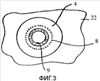 На фиг.2 и 3 показан особенно предпочтительный вариант выполнения устройства согласно изобретению. Отдельные детали на этих фигурах, которые были уже пояснены применительно к фиг.1, обозначены соответствующими позициями. Кровь протекает в направлении стрелки Р1 к отверстию 9, которое содержится в пористой детали 5. В направлении стрелки Р1 за отверстием 9 кровь протекает в постдиффузорное пространство 4, которое имеет субстанцию в виде покрытия 8. Постдиффузорное пространство 4 предпочтительно имеет на своей обращенной к крови стороне покрытие 8 в виде кольцевого покрытия. При этом кольцевое покрытие 8 может быть выполнено в виде сплошной линии или поверхности или же прерывистой линии или поверхности, в частности в виде образованной из расположенных в ряд точек покрытия линии или поверхности. Боковая стенка 4′ постдиффузорного пространства 4 предпочтительно сужается снаружи наклонно в направлении отверстия 9. В частности, наклон имеет форму конуса. На фиг.3 показан вид отверстия со стороны постдиффузорного пространства 4.