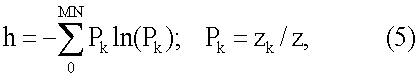 где М и N – порядковые номера пикселей по вертикали и горизонтали соответственно, zk – это частота градаций уровня серого k на изображении, а z определяется как