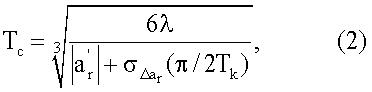 где – производная радиального ускорения; – среднеквадратическое отклонение (СКО) флуктуации радиального ускорения; Tk – период колебаний конструкции наблюдаемого объекта.