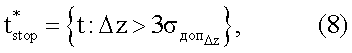 Соответствующее условию (4) правило принятия решения о необходимости остановки процесса формирования оценки текущей дальности и всей процедуры инверсного синтеза в целом следует записать в следующем виде: