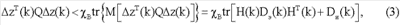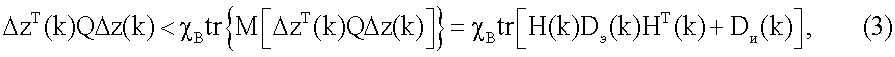 где B>1 определяется из условия задачи; z(k)=z(k)-zm(k) – обновляющий процесс в алгоритме фильтрации; Q – единичная матрица размерных коэффициентов, a tr – операция вычисления следа матрицы.